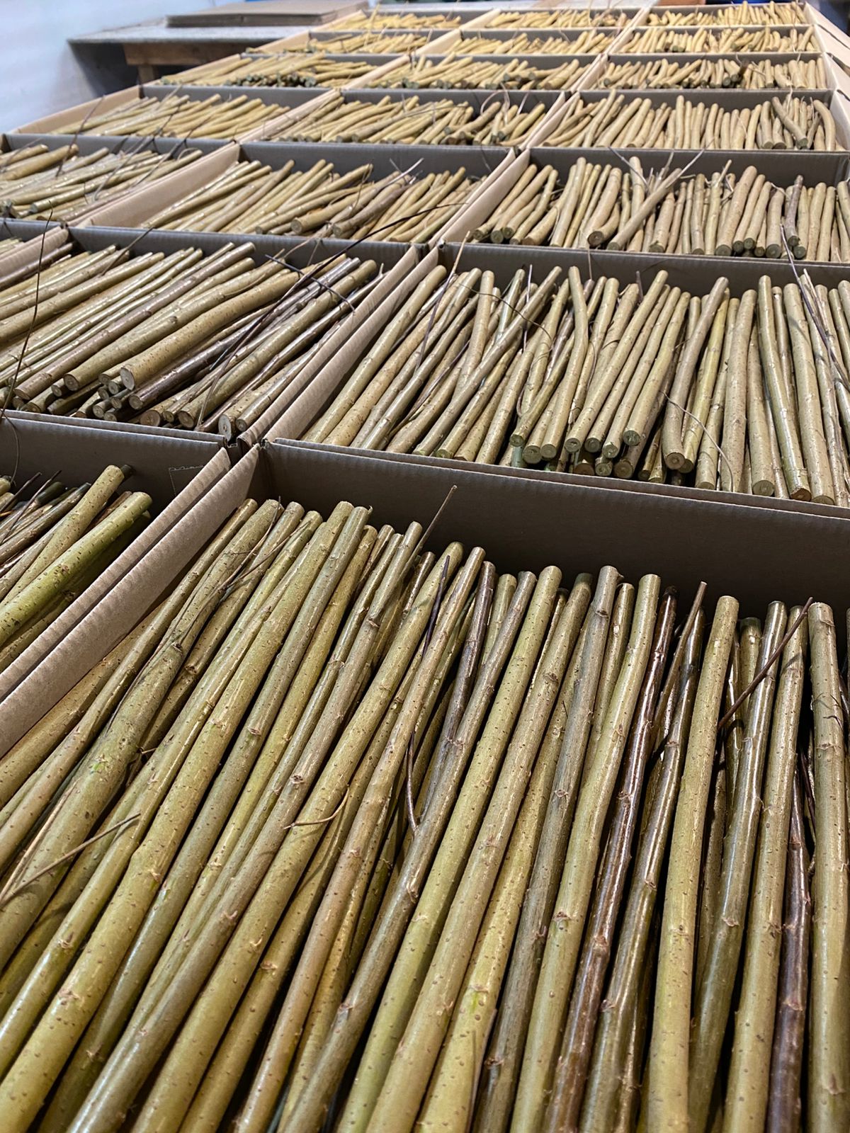 Каждый прут проходит ручную сортировку и калибровку, транспортируется в пароизоляционном материале, а крупные партии — в обрешётке, чтобы исключить прорастание в пути.